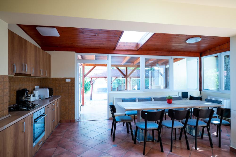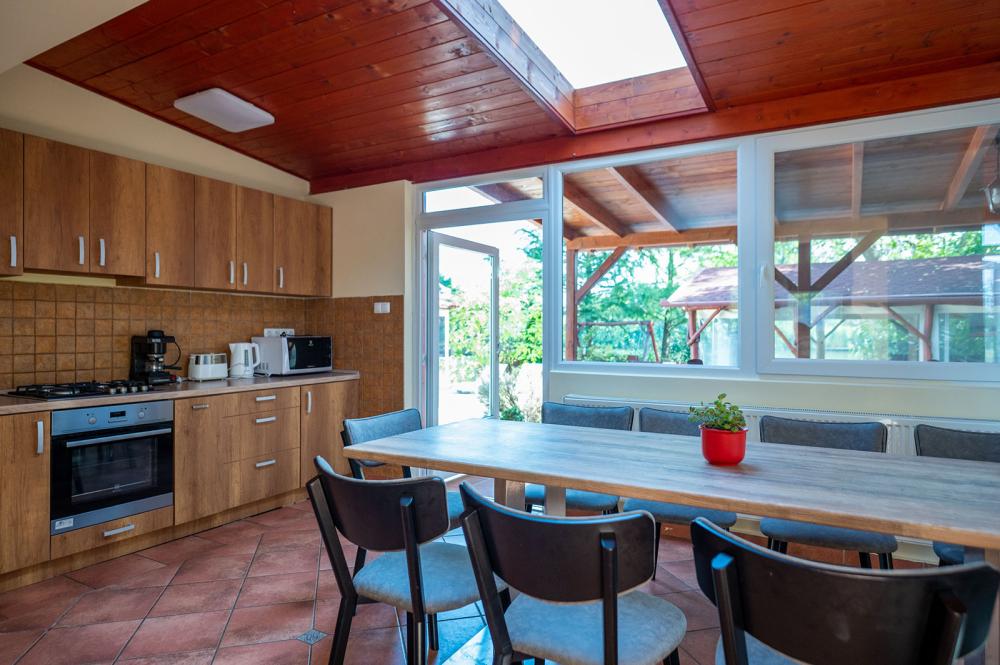 Főszezonban: 8 fő feletti főkre 9.000 Ft/fő/éj