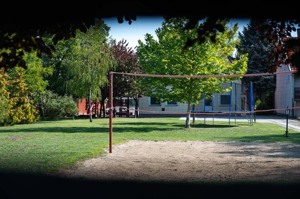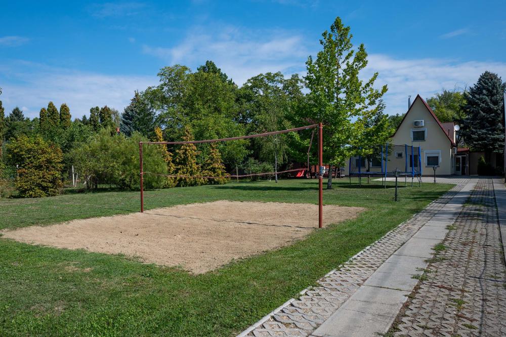 A tágas udvar sportolásra is kiválóan alkalmas, hiszen vendégeink rendelkezésére áll egy strandröplabda-pálya és egy teqball is.