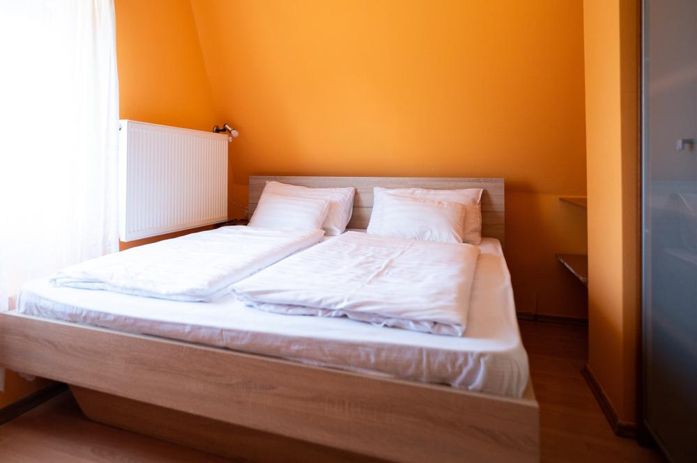 Az emeleti közlekedőből 2 különálló szoba nyílik. Az ágyneműt damaszt huzattal biztosítjuk, az ágyakban pedig Cardo matracok gondoskodnak a pihentető kényelemről.